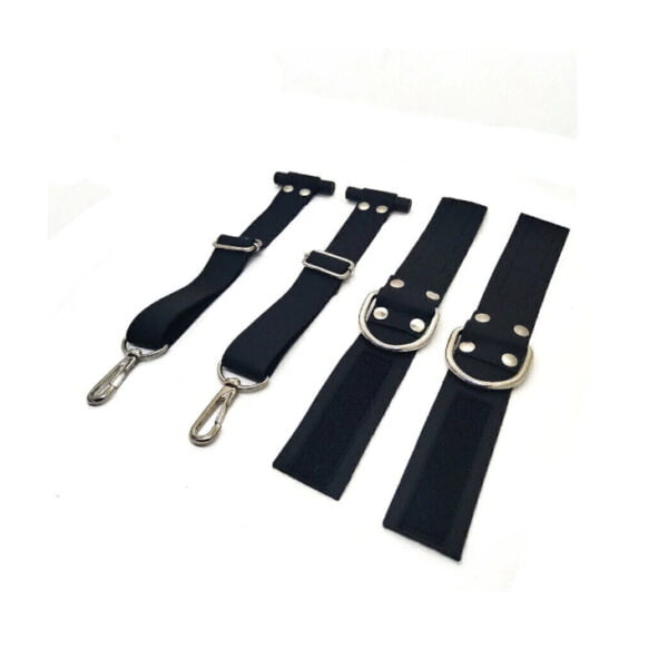 Juego de 2 esposas válidas para muñecas ó tobillos con 2 ataduras para la puerta. Tan sencillo como colocar las correas en la puerta y cerrarla. El mejor complemento para tus juegos de bondage