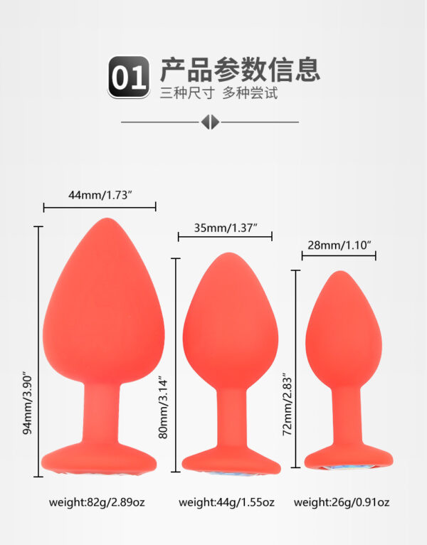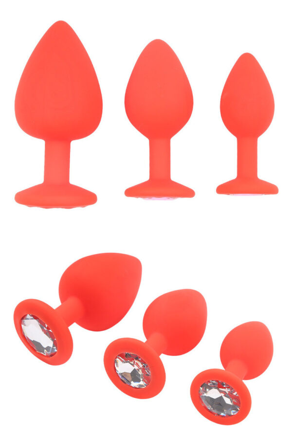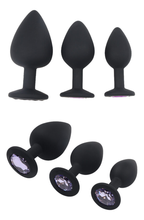 Combo Plug Anal Silicona Kit 3 Talles S,m,l, Con Gema