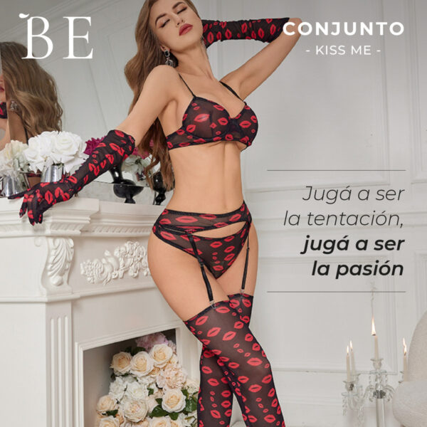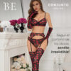 Conjunto Bralette, Tanga Cola Less Medias Be Suave W730 Materiales de alta calidad: Tul y puntilla que se adaptan suavemente al cuerpo.