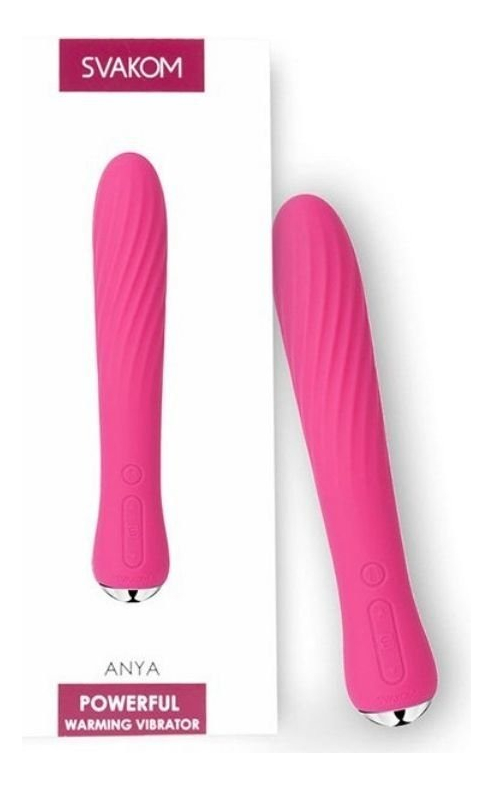 Anya, es un potente vibrador para estimular el Punto G con diseño texturado en espiral, es flexible y con función de calentamiento, llegando a 38°C de temperatura. Con ésta maravilla podes estimular tu clÃtoris, Punto G, juegos anales y otras zonas erógenas de tu cuerpo. Su tamaño mediano lo hace conveniente para sujetar y muy fácil de usar. Con 5 modos de vibración, cada uno con 5 niveles de intensidad, más el modo inteligente Svakom, en total Anya tiene 26 maneras diferentes de llevarte desde el principio hasta las alturas del éxtasis.