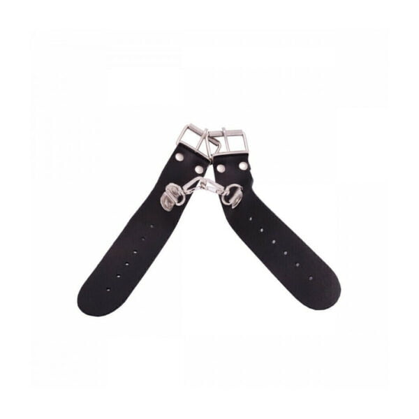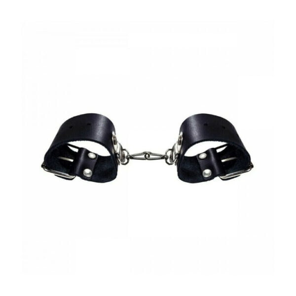 Esposas medianas con mosquetón hechas de cuero. Ofrecen una sujeción a prueba de escape. Los puños se ajustan para un ajuste perfecto
