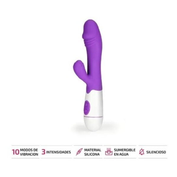 Posee dos puntos vibratorios, uno en la punta y otro en el estimulador de clítoris