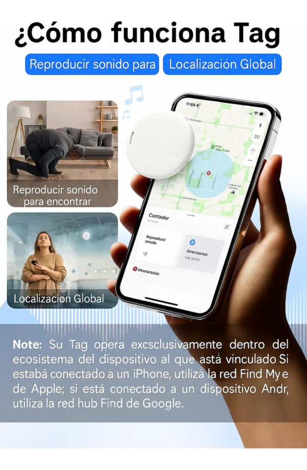 Tuya Smart Tag: Utiliza Bluetooth (generalmente Bluetooth 4.0 o 5.0) para conectarse al teléfono. Su funcionalidad depende de la proximidad al dispositivo emparejado y no tiene una red global de localización.