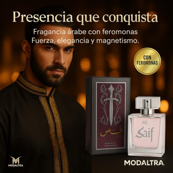 El envase de 100 mL está diseñado para ser práctico y funcional, ofreciendo un aroma persistente que se adapta a la personalidad de cada usuario. Llévate la esencia de Saif y deja una huella inolvidable dondequiera que vayas.